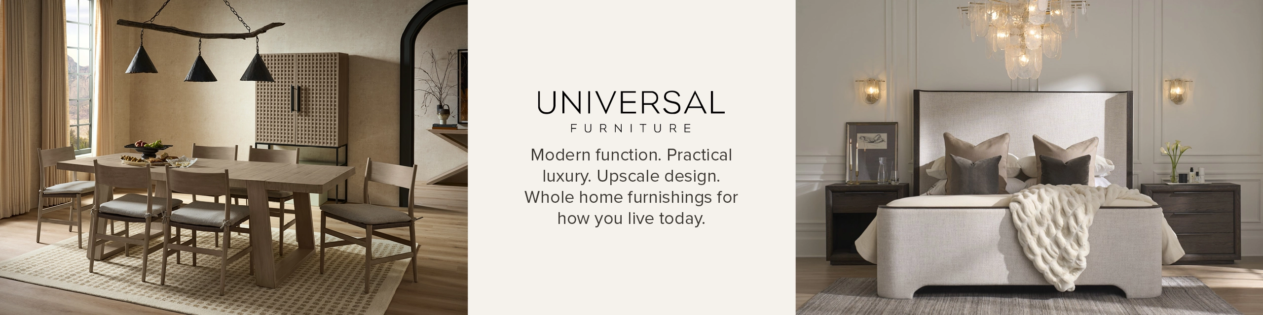 Many Universal pieces are designed with clean lines and compact profiles that work beautifully in smaller rooms. Look for multi-functional items like storage beds, nesting tables, or slim-profile seating to maximize space without sacrificing style.
